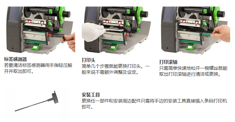 條碼打印機(jī)的機(jī)構(gòu)料件皆以高品質(zhì)的材料制作且在外型及功能上達(dá)到完美的協(xié)調(diào)性。多元的周邊配件和軟件可提供客制化的解決方案。